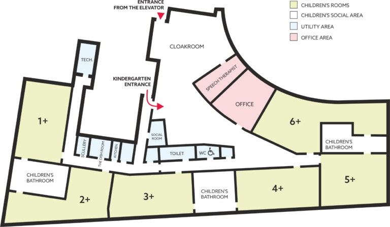The interiors of our preschool and nursery are modern and spacious, designed with the child’s development in mind. The KIDS&Co. preschool and nursery in Poznań feature six rooms—two for nursery groups and four for preschoolers. Children have access to a fenced playground, and rotational parking spaces are available for parents.