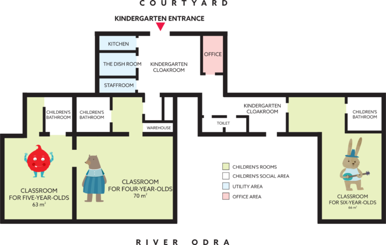 The interiors of our preschool are modern and spacious, designed with the child’s development in mind. The KIDS&Co. preschool in Wrocław features three spacious rooms. Children have access to a playground within the complex.