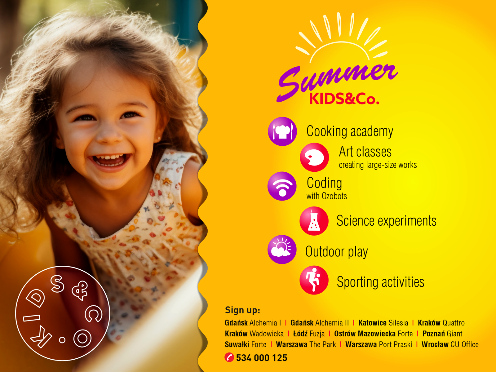 Doesn’t that sound perfect? With “Summer with KIDS&Co.” you can have peace of mind knowing that your children are spending their time actively and productively while you take care of your professional duties. If you are interested in our offer, we encourage you to contact us and sign up:
