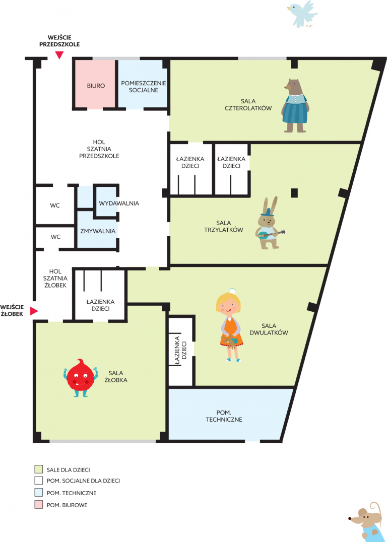 Wnętrza naszego przedszkola i żłobka są nowoczesne i duże, zaprojektowane z myślą o rozwoju dziecka. Krakowskie przedszkole i żłobek KIDS&Co. to cztery sale — jedna żłobkowa i trzy przedszkolne. Dzieci mają dostęp do placu zabaw na terenie kompleksu, a dla rodziców przewidziane są miejsca parkingowe.