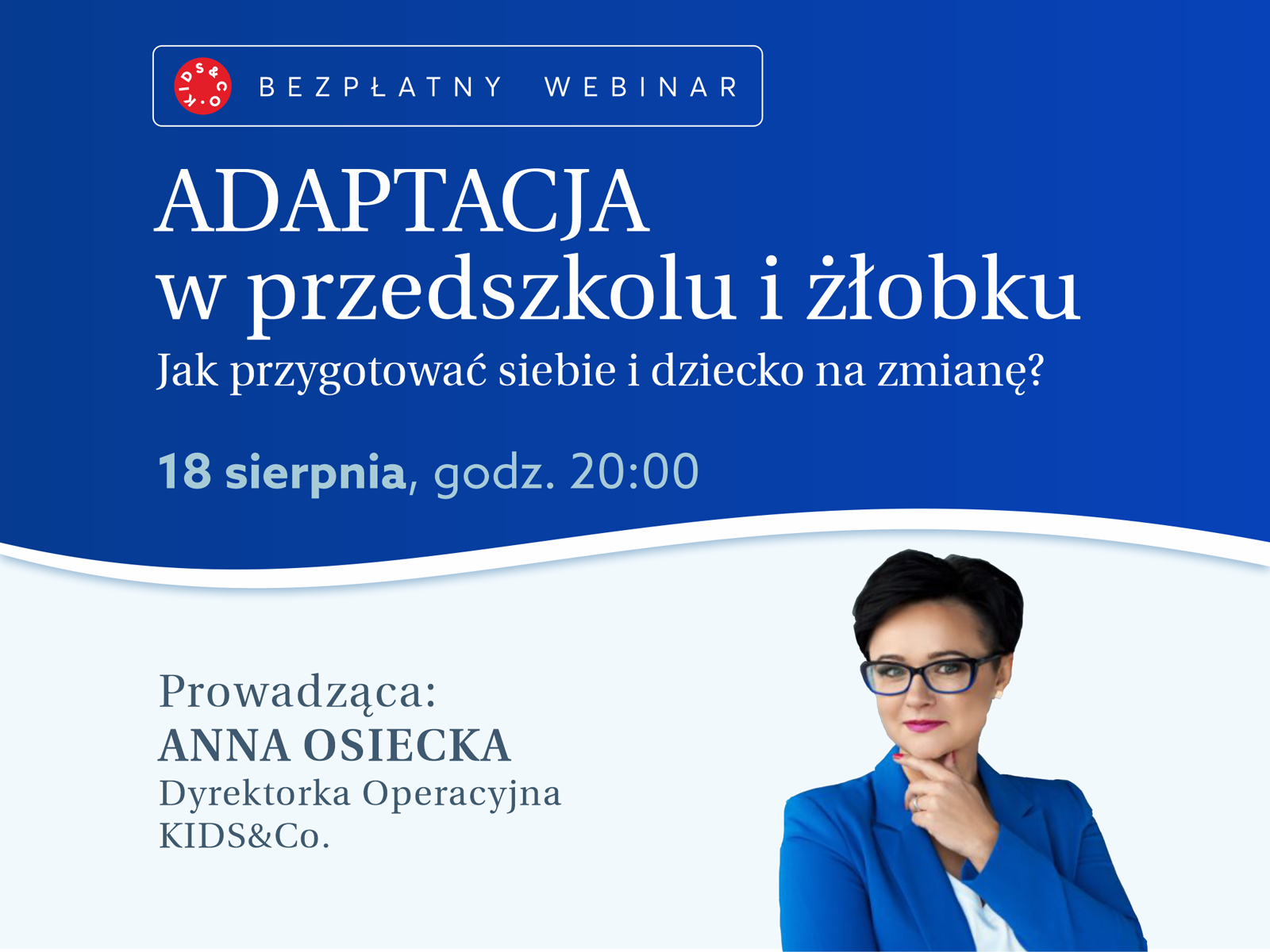 Podczas webinaru opowie o tym, co jest ważne zarówno dla dzieci, jak i rodziców. Adaptacja na „piątkę”, czyli jak przygotować dziecko na przygodę ze żłobkiem i przedszkolem i jak poradzić sobie z nią samemu. Co to jest, ile trwa i w czym tak na prawdę tkwi problem — na te wszystkie pytania odpowiemy podczas naszego webinaru. Już teraz zachęcamy do przygotowania interesujących Państwa pytań. Zapraszamy!