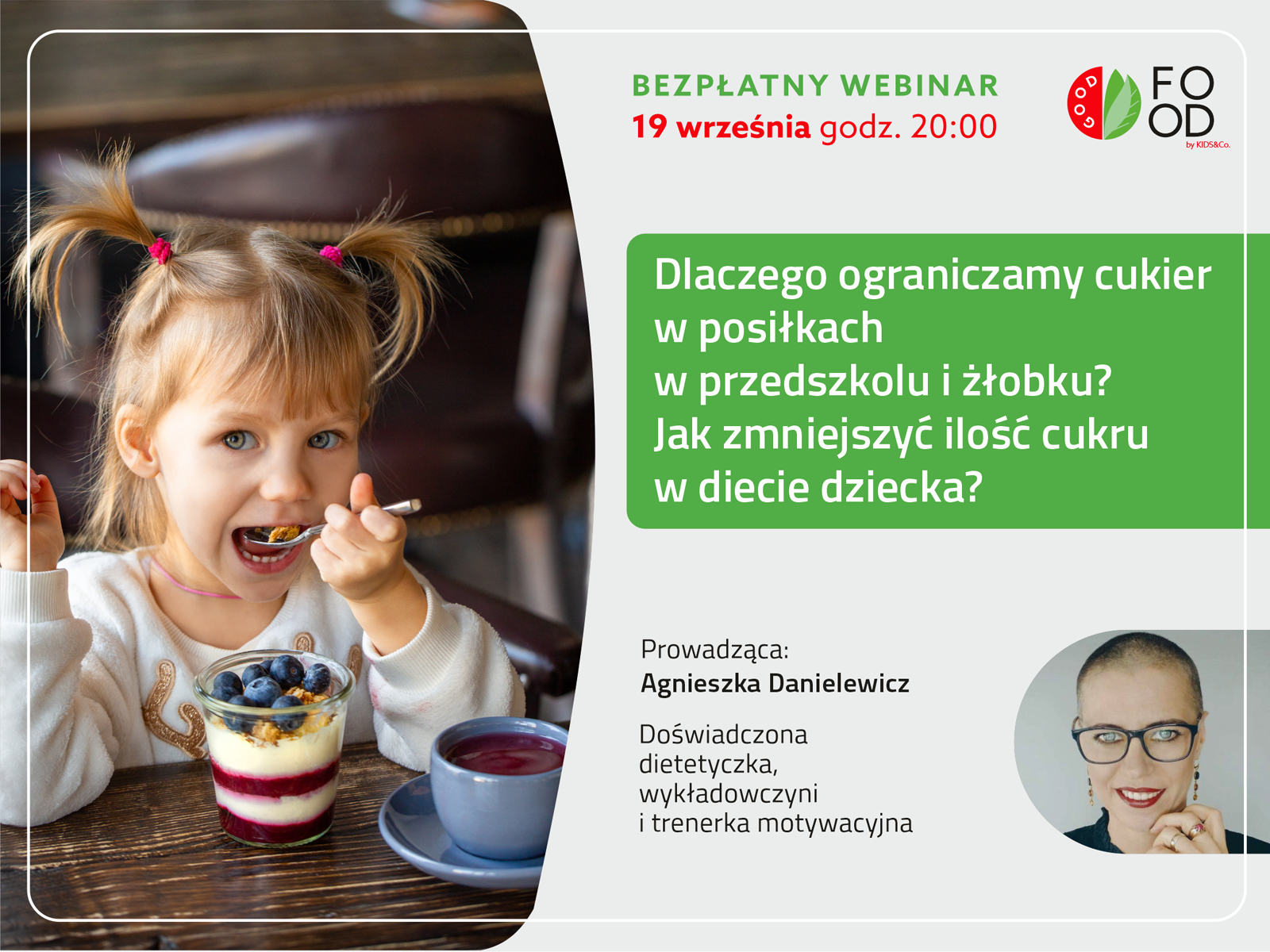 Dlaczego ograniczamy cukier w posiłkach w przedszkolu i żłobku? Jak zmniejszyć ilość cukru w diecie dziecka? Pobierz prezentację z webinaru z Agnieszką Danielewicz