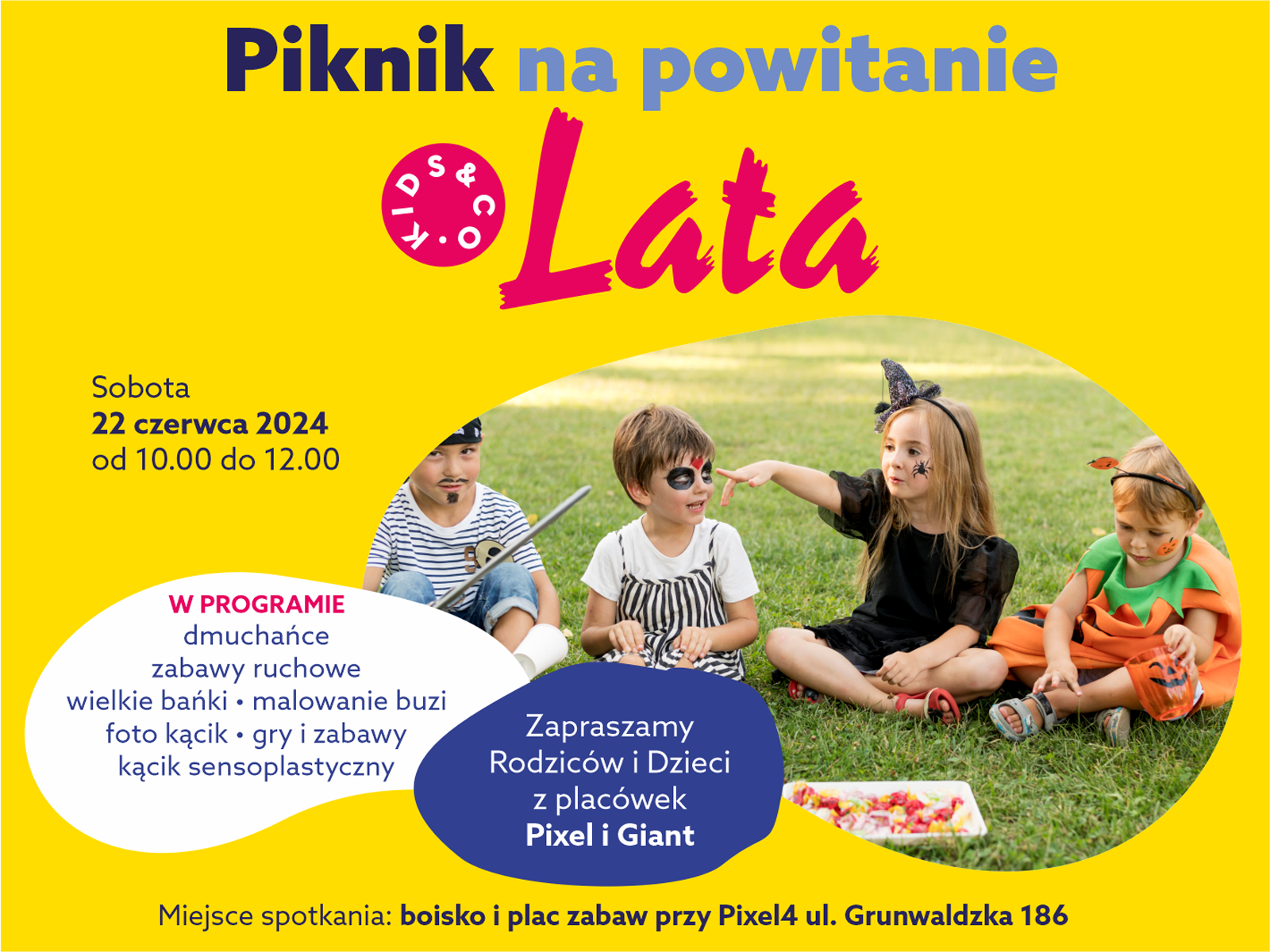 W sobotę 22 czerwca 2024, w godzinach od 10.00 do 12.00 serdecznie zapraszamy na piknik na powitanie lata do Pixel Poznań.